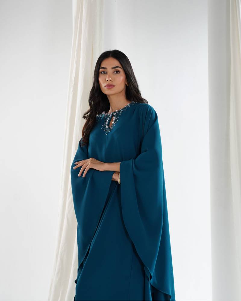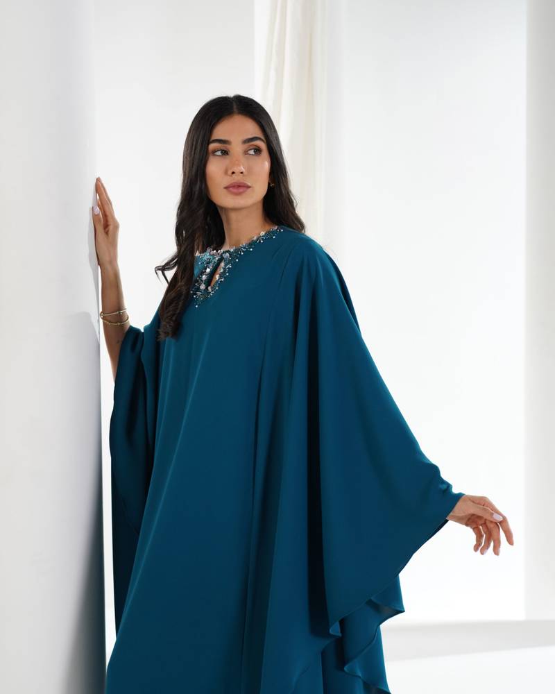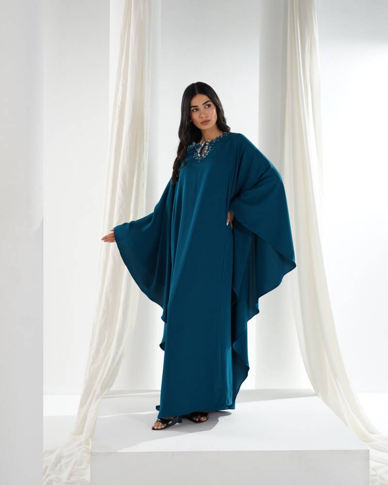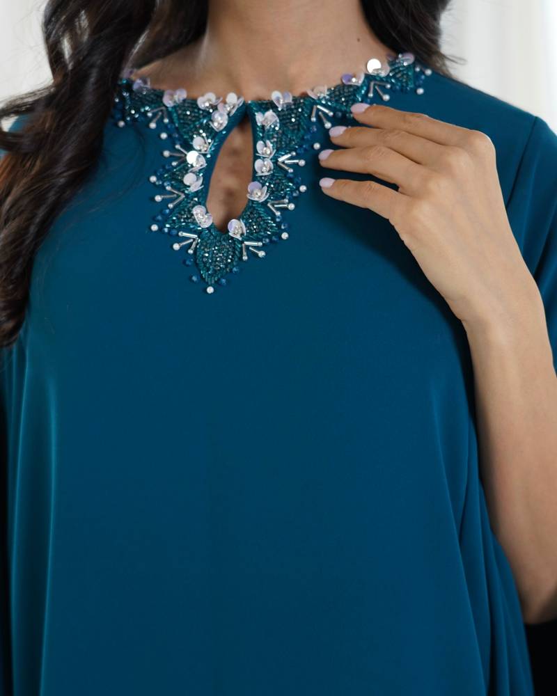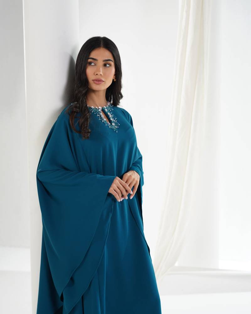التفاصيل : شيفون وبطانه حرير وشغل على الكتف والرقبه