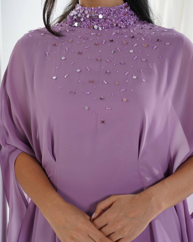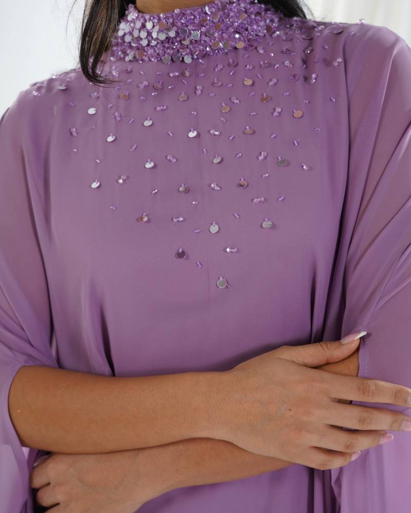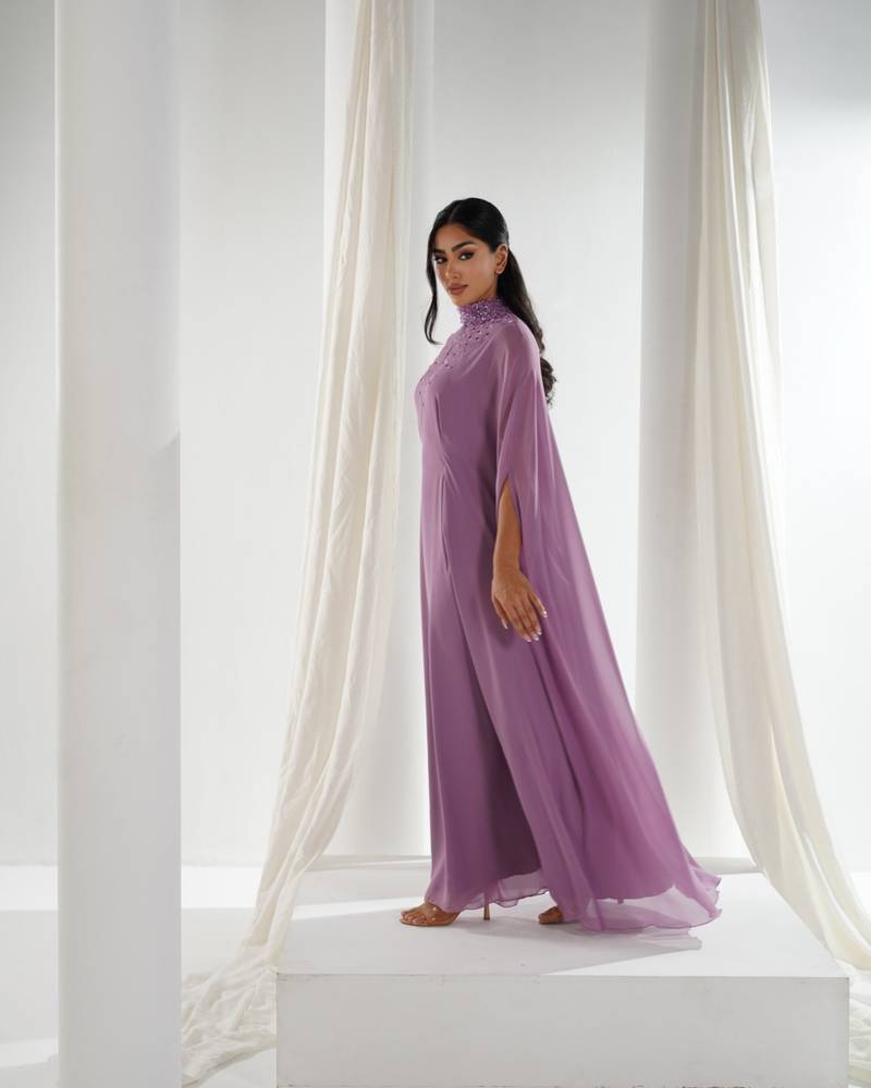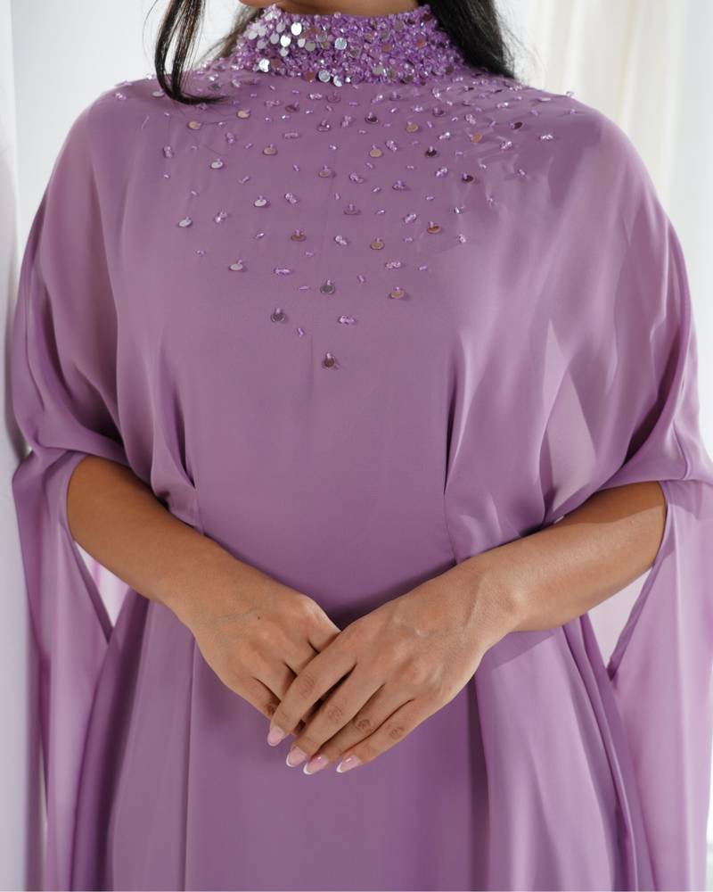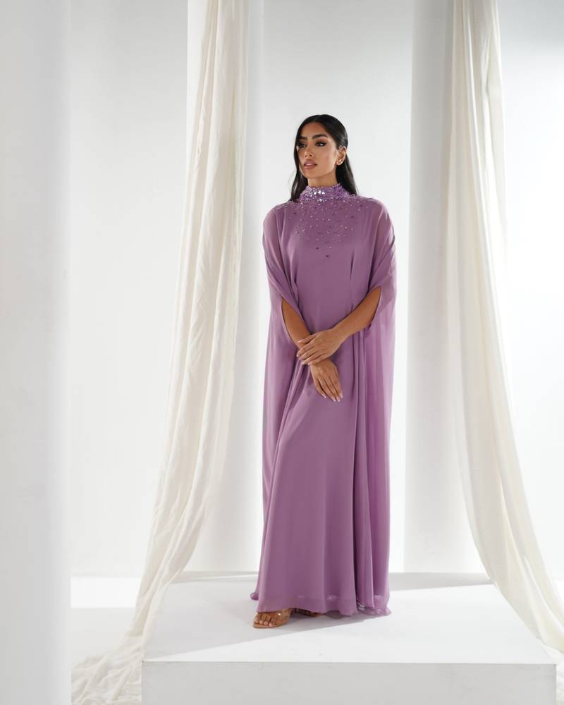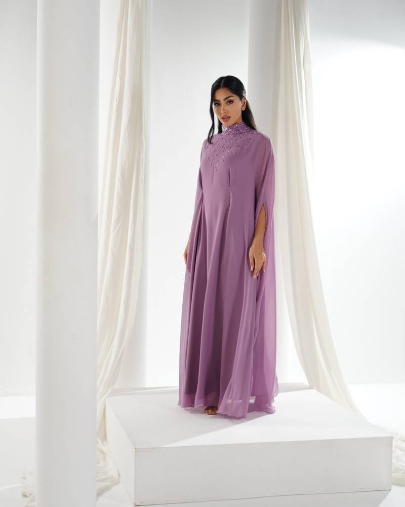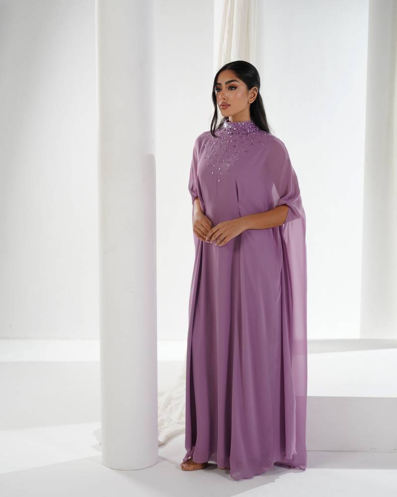 التفاصيل : شيفون وبطانه حرير وشغل على الكتف والرقبه
