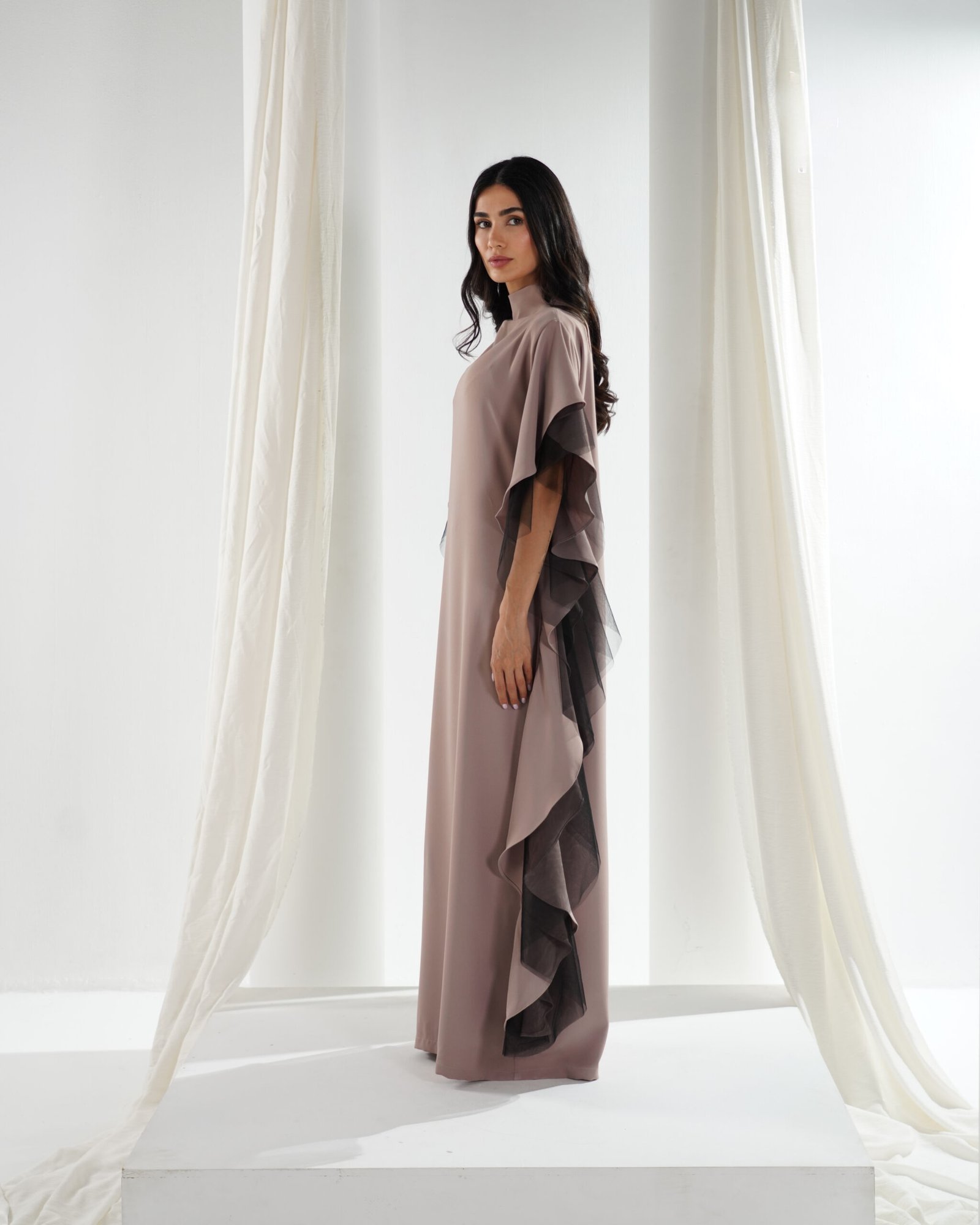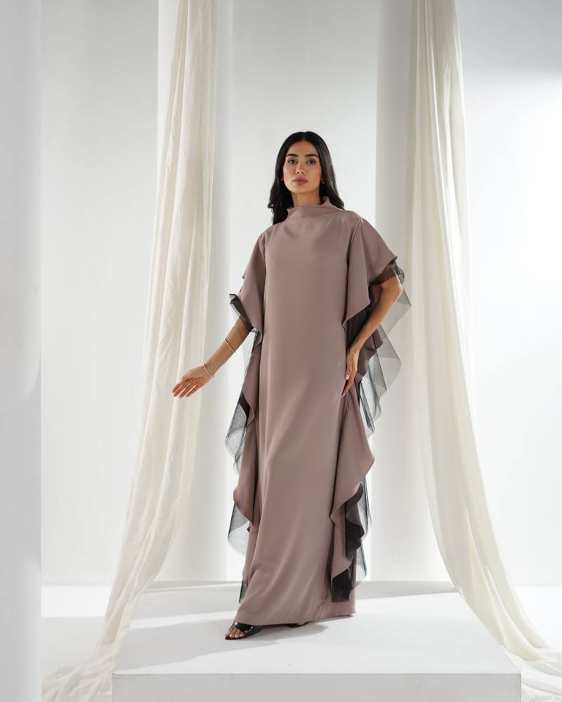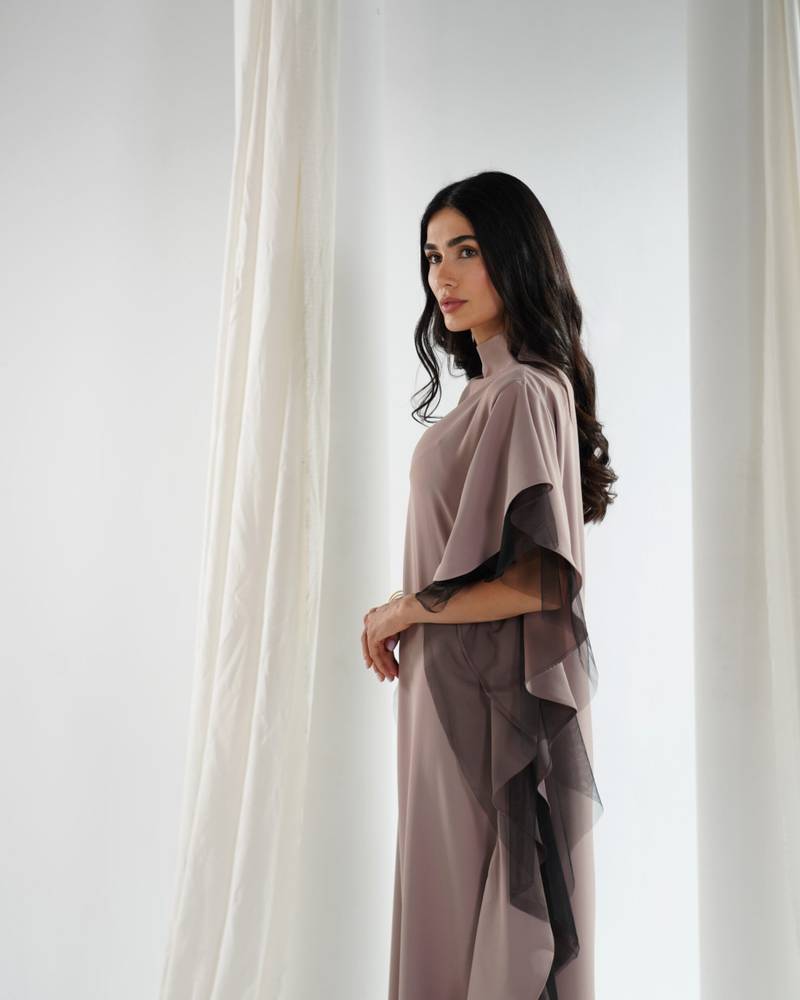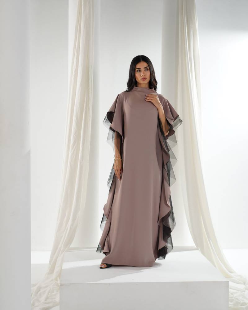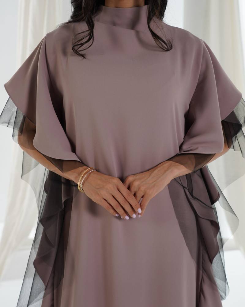 التفاصيل : شيفون وبطانه حرير وشغل على الكتف والرقبه